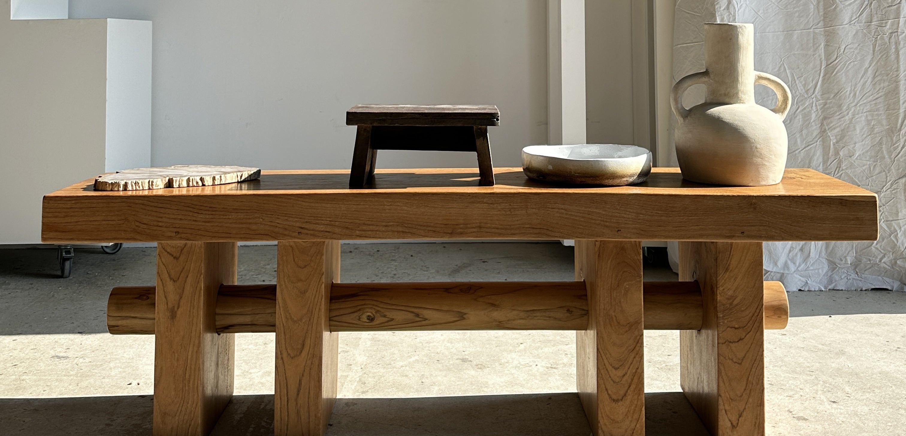 The manifesto of L’Office Objet is clear: to spotlight objects that are radical, sensitive, and committed. Each piece is selected with a curator’s eye and a craftsman’s respect, celebrating the quiet strength of raw materials and the subtleties of organic texture. This isn’t just about style — it’s about a deep awareness of the world, where design becomes a gesture of attention and care. The pieces chosen by L’Office Objet resonate with a deliberate simplicity — clean lines, raw textures, and geometric purity. Objects are not merely decorative; they are functional, designed to live with us and evolve through use. Whether it's a tripod stool made iconic by its elegance or ancient teak furniture infused with memory, every item holds a story that bridges time and utility. Wood is the beating heart of this collection — from fossilized wood to reclaimed teak, the materials speak in whispers of their origins. There is a tactile honesty in these textures: rough, worn, imperfect. Rather than hiding the rawness, L’Office Objet embraces it, crafting a material narrative that honors the flaws and beauty of nature.